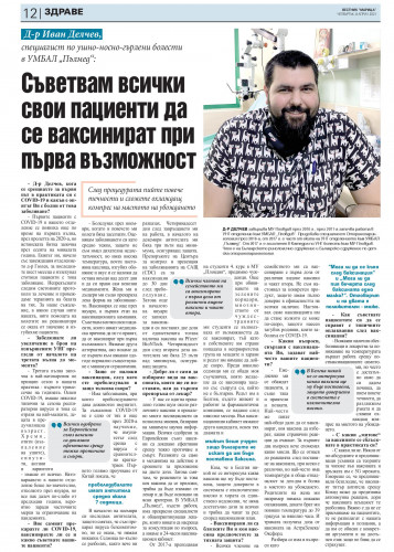 Д-р Иван Делчев, специалист по ушно-носно-гърлени болести в УМБАЛ „Пълмед“: Съветвам всички свои пациенти да се ваксинират при първа възможност