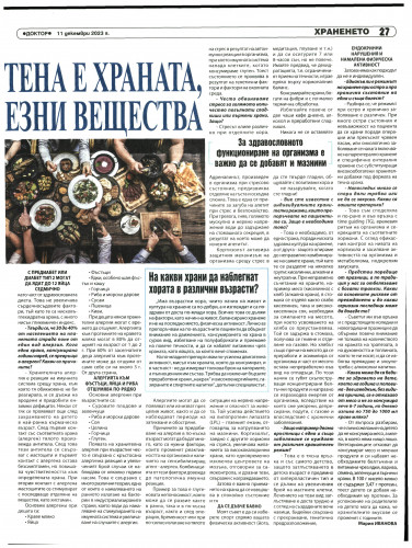 "Има възрастни хора, чиито начин на живот и култура на хранене са по-добри, а и изглеждат и са поздрави от доста по-млади хора. Всичко това се дължи на фактори, като начин на живот, балансирано хранене и не на последно място, физическа активност. Лично аз препоръчвам на по-възрастните пациенти да обърнат внимание на движението, консумирането на храна в суров вид, избягване на полуфабрикати и приемане на повече течности, и да си набавят витамини чрез храната, като яйцата, за които вече споменах.