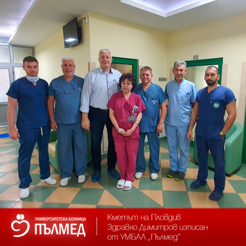Кметът на град Пловдив Здравко Димитров днес бе изписан от УМБАЛ „Пълмед“, където претърпя успешна операция по смяна на тазобедрена става.