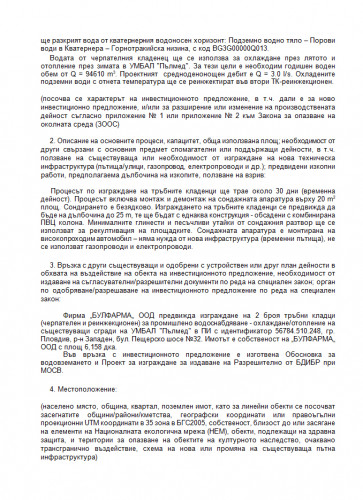 Уведомяваме Ви, че "БУЛФАРМА" ООД има следното инвестиционно предложение: