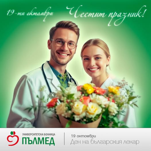 Ръководствата на УМБАЛ и ДКЦ „Пълмед“ поздравяват всички лекари с техния професионален празник - Деня на българския лекар, и им пожелават здраве и лични и професионални успехи!