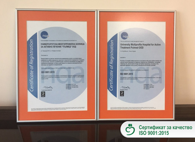 В международния ден на здравето и празник на здравния работник Университетска болница „Пълмед“ получи официално Сертификат за управление на качеството съгласно международния стандарт.